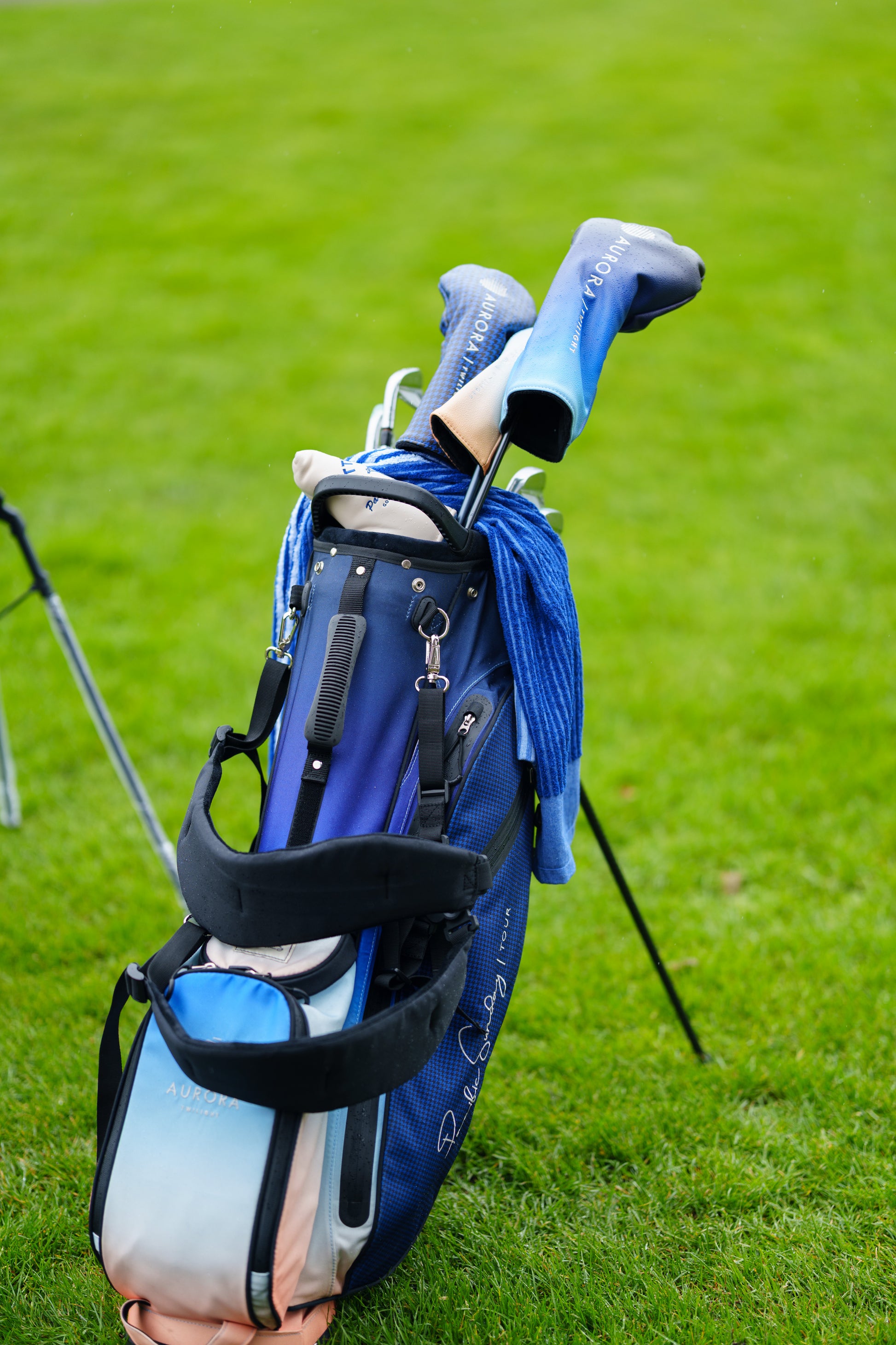 The Aurora Twilight was designed for sun-up tee times and twilight finishes. If you love those rare hours when the course feels untouched and time slows down, where dew still clings to the grass and the last putts drop under fading light. Quietly bold, effortlessly composed. If you chase the light but not the crowds, this is the golf bag for you.